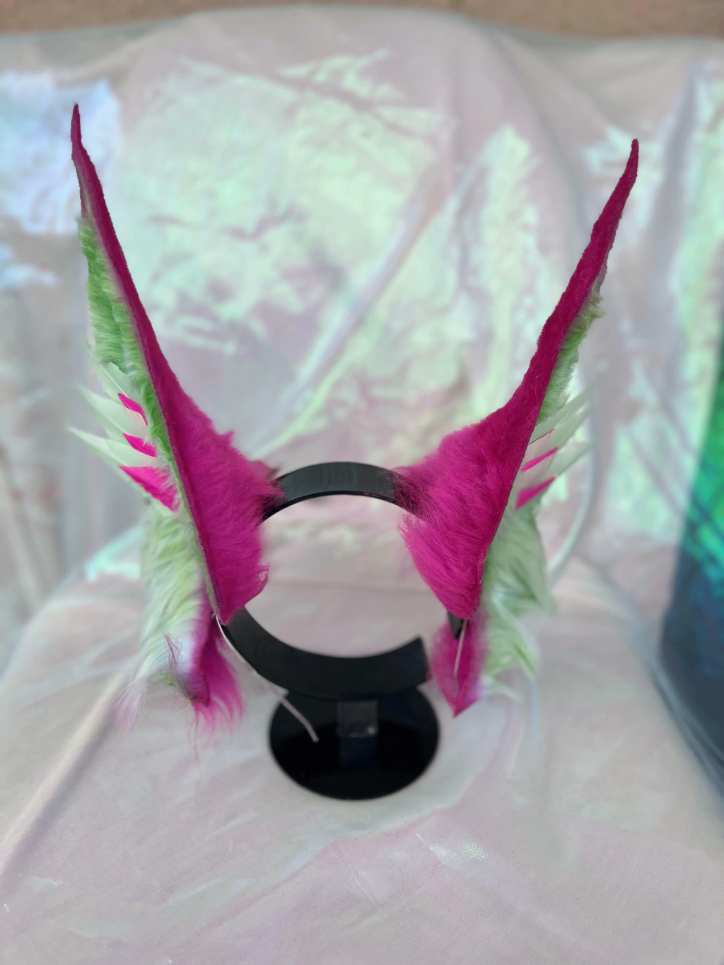 Confeccionada com pelúcia sintética macia, base de E.V.A, arame galvanizado e pintura artesanal, sua estrutura interna permite moldar a orelha conforme sua preferência, garantindo um acabamento impecável e confortável.
